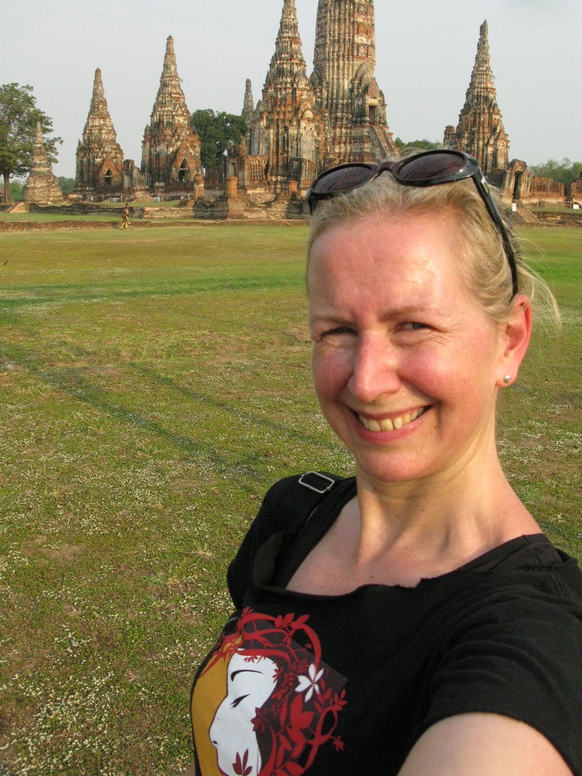The ruins, in varying degrees of preservation, are now scattered around a large-ish modern town, so I hire a bike opposite the station. Why not get overheated again, I think to myself. It's a boneshaker – no gears, no suspension and the distances are further than I thought. Maybe I should have hired one of Ayutthaya's unique little tuk-tuks, with their strange domed fronts.
